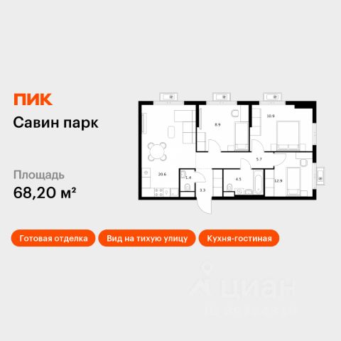 Продаётся 3-комн. квартира площадью 69,1 кв.м на 8 этаже 25 этажного дома (Корпус 8, Секция 1) проекта ПИК Савин парк. Светлый просторный подъезд на уровне земли, функциональная планировка, большие окна, предчистовая отделка. Жилой квартал "Савин парк" возводится в Кстовском муниципальном районе, рядом с Советским районом Нижнего Новгорода. До центра Нижнего Новгорода всего 20 минут на автомобиле, а до города Кстово - 18 минут. В этом проекте есть всё для комфортной жизни. Кроме жилых домов, проект включает два детских сада, один из которых уже строится, школу и многоуровневые надземные паркинги. На первых этажах откроются кафе, магазины и другие сервисы - чтобы купить кофе к завтраку или пиццу на ужин, можно будет просто спуститься на лифте. На подземном этаже появятся кладовые, в которых удобно хранить крупные и сезонные вещи. Чтобы жители квартала чувствовали простор и получали больше солнечного света, мы построим дома разной высоты. Во дворах появятся уютные парки с детскими площадками и местами для отдыха - здесь можно поболтать с соседями, почитать в тени или позаниматься йогой. Спортивные площадки мы разместим так, чтобы шум от них не мешал жителям. В квартирах тоже будет много солнечного света за счёт балконов и больших окон. Вы получите ключи от квартиры с уже готовой отделкой - можно заезжать и жить. На машине от "Савин парка" можно доехать до ТРЦ "МЕГА" за 7 минут, за 14 минут - до Анкудиновского леса, а за 20 - до "Щёлоковского хутора". Артикул 985657 (Застройщик ООО "СЗ "Экострой")