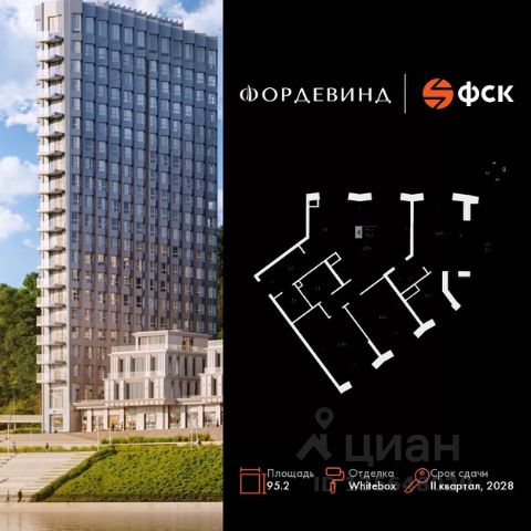 Выгода до 33%. ТОЛЬКО ДО 23.02 Прямая продажа от застройщика! Продаётся 4-к квартира номер 7 общей площадью 95.2 кв.м. на 2-м этаже 20 этажного здания. Отделка Whitebox. Цена с учётом скидки. Особенности квартиры: Квартира с предчистовой отделкой (White box). Вам не придется заниматься черновыми и трудоёмкими работы, а чистовую отделку и дизайн - сделайте на свой вкус. Информация о комплексе: ЖК "Фордевинд" - новый стандарт жизни в Нижнем Новгороде. Расположенный на улице Черниговской, комплекс бизнес-класса "Фордевинд" станет ярким архитектурным акцентом города. Здесь сочетаются инновационные технологии и проверенные традиции: современный дизайн, качественные материалы и виды, вдохновляющие каждый день. Проект гармонично вписывается в природный ландшафт, задавая новый ориентир комфорта и эстетики. Внутренняя инфраструктура: Пространство, где всё продумано до мелочей. Комплекс объединяет шесть корпусов переменной этажности - от 3 до 20 этажей, что позволяет выбрать формат жилья по своему ритму жизни. В проекте представлены квартиры площадью от 27 до 237,9 м², включая эксклюзивные пентхаусы и урбан-виллы с собственными террасами и панорамными окнами. Для удобства жителей предусмотрен подземный паркинг, колясочные помещения и благоустроенные дворы с озеленением. Территория комплекса продумана для прогулок и отдыха, а особое внимание уделено видам: квартиры ориентированы на живописные пейзажи и закаты над рекой, к которой организован безбарьерный доступ.