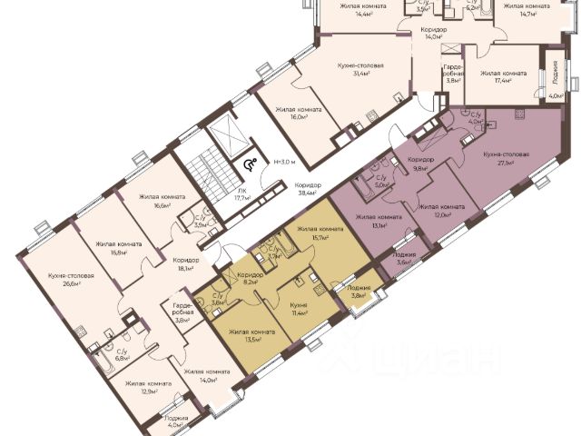 Большой Тамбур нa двe квaртиры + отдельный тамбур для одной квартиры со шкафами.
