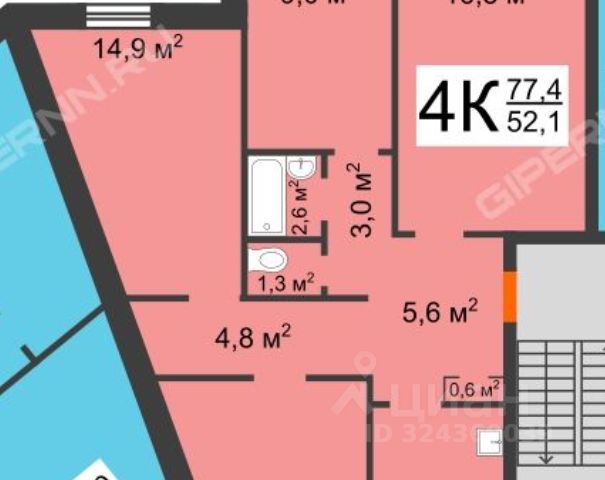 Арт. 133565222 В продаже 2-х комнатная квартира, находящаяся по адресу: р-н Кстовский, г Кстово, мкр 2-й, д 29.