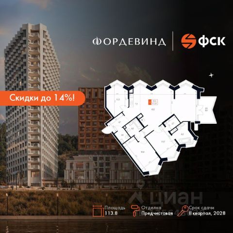 Скидки до 14%! Прямая продажа от застройщика! Продаётся 4-к квартира номер 306 общей площадью 95 кв.м. на 2-м этаже 10 этажного здания. Предчистовая отделка. Цена с учётом скидки. Особенности квартиры: - Мастер-зона с санузлом. Уют и комфорт в одном пространстве. - Распашная планировка - отличное сочетание удобства и свободы. - Увеличенное количество окон - дополнительное освещение и свежий воздух. - Угловое остекление - свет и воздушность в каждой комнате. - Гостевой санузел - комфорт и удобство для ваших гостей. - Евроформат - просторное и удобное жилье с отличной планировкой. - Просторная мягкая зона - комфорт и уют для отдыха всей семьи. - Балкон - открытое пространство для отдыха. - Лоджия - уютное место для отдыха и тишины. Квартира с предчистовой отделкой. Вам не придется заниматься черновыми и трудоёмкими работы, а чистовую отделку и дизайн - сделайте на свой вкус. Информация о комплексе: ЖК "Фордевинд" - новый стандарт жизни в Нижнем Новгороде. Расположенный на улице Черниговской, комплекс бизнес-класса "Фордевинд" станет ярким архитектурным акцентом города. Здесь сочетаются инновационные технологии и проверенные традиции: современный дизайн, качественные материалы и виды, вдохновляющие каждый день. Проект гармонично вписывается в природный ландшафт, задавая новый ориентир комфорта и эстетики. Внутренняя инфраструктура: Пространство, где всё продумано до мелочей. Комплекс объединяет шесть корпусов переменной этажности - от 3 до 20 этажей, что позволяет выбрать формат жилья по своему ритму жизни. В проекте представлены квартиры площадью от 27 до 237,9 м², включая эксклюзивные пентхаусы и урбан-виллы с собственными террасами и панорамными окнами. Для удобства жителей предусмотрен подземный паркинг, колясочные помещения и благоустроенные дворы с озеленением. Территория комплекса продумана для прогулок и отдыха, а особое внимание уделено видам: квартиры ориентированы на живописные пейзажи и закаты над рекой, к которой организован безбарьерный доступ. Купить 4-комнатную квартиру в микрорайоне Центр в городе Нижний Новгород.