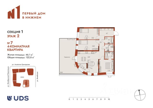 Просторная 4-комнатная квартира в "Первом доме в Нижнем" Характеристики: • Жилая площадь: 45,7 м² • Общая площадь: 85,9 м² Планировочные преимущества: Просторная кухня-гостиная с 4 окнами обилие естественного света. Окна на две стороны света отличная инсоляция и проветривание. Три санузла, один из них с ванной. Мастер-спальня с увеличенной площадью. Отдельная грязная зона при входе (тамбур или гардеробная). Ниша под шкаф в холле удобное хранение. Тёплая лоджия с остеклением (возможен выход из кухни/комнаты). Две корзины под кондиционер. Пространство для рабочего места можно организовать кабинет или зону для учебы. Увеличенное количество окон светлая и уютная атмосфера. Дополнительные особенности: • Вид на город. • Двухуровневый подземный паркинг (скоро в продаже!). • Лифты (пассажирский + грузовой). • Двор без машин, зоны для спокойного отдыха и прогулки с детьми. • Развитая инфраструктура рядом: магазины, школы, детские сады, парки. • Хорошая транспортная доступность рядом остановки общественного транспорта. Одна минута до метро "Чкаловская". Идеальный вариант для большой семьи или тех, кто ценит комфорт и продуманную планировку! Продам 4-комнатную квартиру в микрорайоне Ленгородок в городе Нижний Новгород.