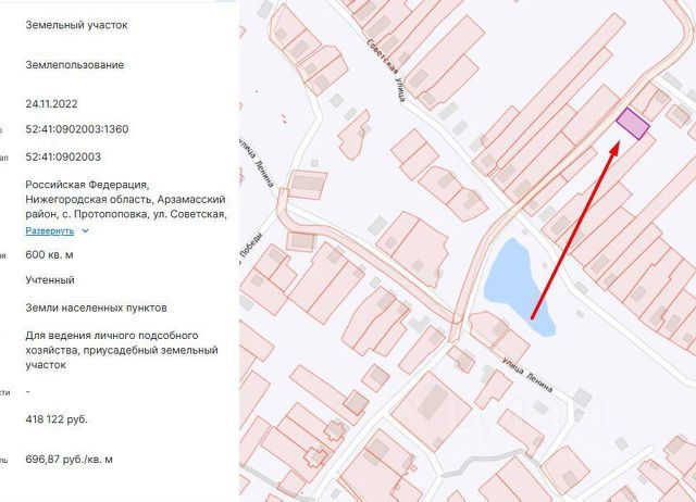 Продается земельный участок ЛПХ 25 соток в д. Охлопково, Арзамасский район. Идеальный вариант для постоянного проживания или загородного дома. Удобный подъезд круглый год. На участке недостроенный дом-баня на капитальном ленточном фундаменте. Сруб из очень толстых бревен, собран на натуральный утеплитель ( джут) - не требуется конопатить. Уже смонтированы центральный водопровод и канализация. Участок огорожен. Коммуникации: электричество 15 кВт, центральный водопровод, газ по улице. Подробнее по телефону. Возможен торг. Рядом Арзамас, Выездное, Васильев Враг, Сельхозтехника, Дивеево, Красное, Шатки, Ардатов, Кирилловка, Березовка, Морозовка.