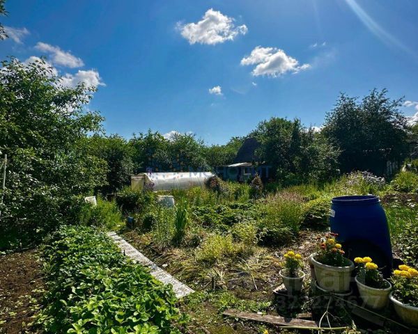 На участке газон, плодовые деревья, туи, мангал, летний душ и туалет.