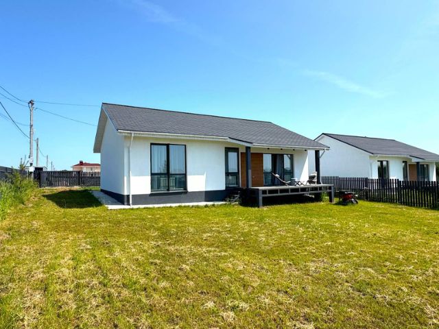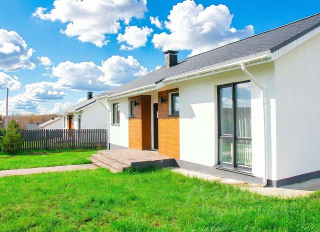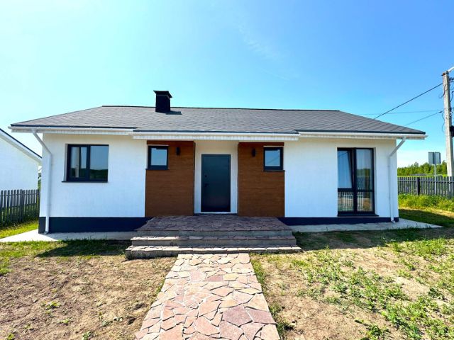ВАЖНО! Цена указана за черновую отделку (именно эти характеристики описаны в объявлении). Дом также можно купить: С предчистовой отделкой (+ 1 млн р) С чистовой отделкой (+ 2 млн р) Дом подходит под семейную ипотеку. Фотографии в объявлении: часть снимков — это интерьеры шоурума, демонстрирующие пример реализации дизайн-проекта в поселке (финальный вариант отделки может отличаться). Также в карусели присутствуют реальные фото дома в текущем состоянии (черновая отделка) Локация: Нижегородская область, Богородский район, д. Кожевенное, новая деревня Владыкино. Поселок расположен на территории площадью 117 га с живописными видами, окружен массивами смешанных и хвойных лесов. Интересный рельеф, закрытая огороженная территория, простор и спокойствие всего в 20 минутах от города. Характеристики дома (черновая отделка): Одноэтажный дом площадью 105 кв.м. на ровном участке 9 соток (участок правильной прямоугольной формы). Планировка: просторная кухня-гостиная с выходом на террасу из террасной доски, три спальни, совмещенный санузел. Коммуникации в доме: центральное водоснабжение (вода заведена в дом), электричество (15 кВт, 3 фазы, разведена по дому), газ подведен к участку, установлен септик 4,5 м. Благоустройство участка: по периметру установлен забор высотой 1,6 м с откатными воротами, проложена бетонная дорожка к дому, сделана отмостка. Остекление: большие оконные проемы, ПВХ REHAU 70 (цвет графит). Входная дверь с терморазрывом и трехконтурным утеплением. Преимущества поселка Владыкино: • Закрытая и охраняемая территория: въезд через шлагбаум по пропускам, видеонаблюдение; • Асфальтированные дороги по всему поселку; • Поселок со всех сторон окружен лесом; • Единый стиль домов; • Школа и детский сад в 8 минутах езды, организован школьный автобус; • Уличное освещение по всему поселку; • Собственная база отдыха; • Конюшня и контактный зоопарк; • Озеро с возможностью рыбалки; • Православный храм на территории; • Детская и спортивная площадки.