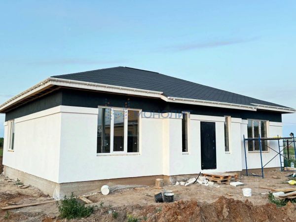 Дом построен основательно: фундамент — монолитная плита, стены — армированные газосиликатные блоки, мощная кровля из финской черепицы