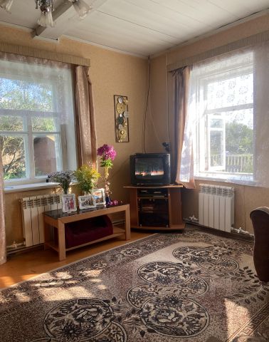 Дом 1963 года постройки. Изба - сруб из бревна с внешней стороны обшит тёсом. Размер сруба: длина 8,56 м; ширина 5,22 м.; высота 2,4 м; внутренняя площадь 38 кв.м. Терраса, сени, чулан - каркас. Сени и чулан заново сделаны в 2016 году. На террасу есть новые рамы со стеклом. Дом стоит на ленточном фундаменте. Бревно, в очень хорошем состоянии. Нижние венцы сруба отремонтированы в 2016 году. Стоит на ленточном фундаменте. Дом продаётся под разбор и вывоз.
