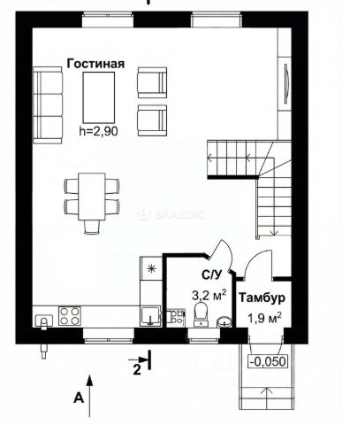 * Первый этаж: холл, просторная столовая, гостиная с камином, рабочий кабинет, спальня, санузел, выход на открытую террасу.