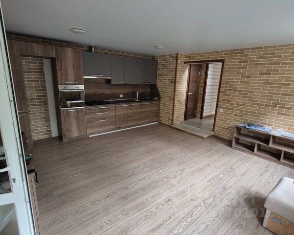 Первый этаж 100 кв.м. На 1-ом этаже расположены: прихожая, сауна с электрокаменкой, душевая, бойлерная, туалет, кухня 21кв.м и три комнаты (23+15+15)кв.м. Сауна, душевая, туалет требуют косметического ремонта.