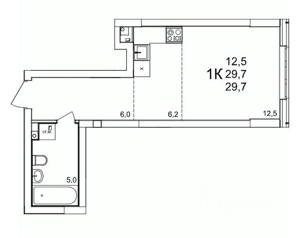 Продаётся 1-комнатная квартира в строящемся доме (54), срок сдачи: III-кв. 2027, общей площадью 29.4 кв.м., на 9 этаже. Расположение, транспортная доступность