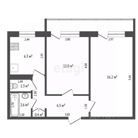 • ✅ Объект наибольшей площади: 54,7 м²