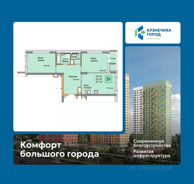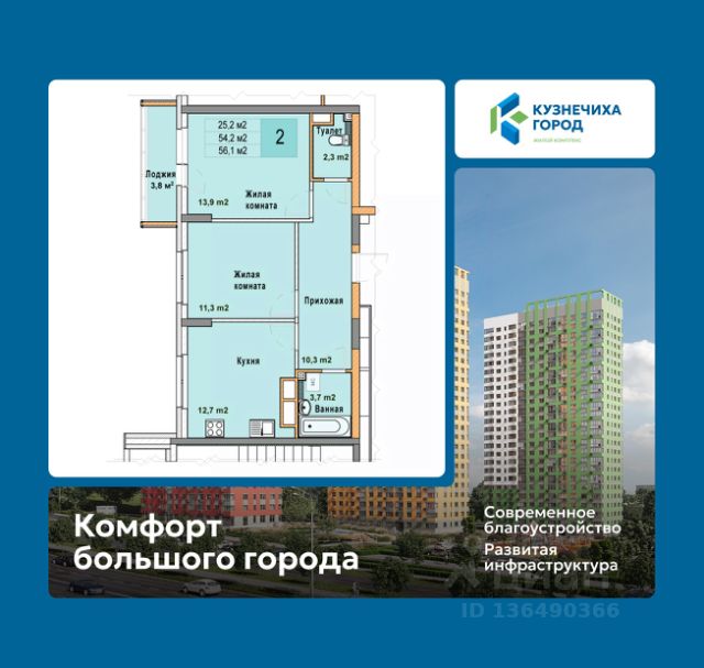 Двухкомнатная квартира с отделкой в ЖК "Кузнечиха город" на 11 этаже. Общая площадь: 54.4 кв.м. Высота потолков 2.7 м. Квартира находится в корпусе 5. Дом монолитный, одноподъездный, высотой 25 этажей. На этаже 8 квартир. В подъезде 2 пассажирских и 1 грузовой лифт. Окончание строительства - 3 квартал 2028 года. Оформление сделки по договору долевого участия. "Кузнечиха Город" это современный семейный жилой комплекс расположенный в Советском районе в окружении парков и развитой инфраструктуры. Проект ориентирован на семейную аудиторию, поэтому особое внимание уделяется благоустройству и формированию соответствующей инфраструктуры. 1-ая очередь застройки включает в себя 12 кварталов, состоящих из 37 домов разной этажности. В 2024 году строительство первой очереди было завершено. На территории первой очереди ЖК работают 2 детских сада и школа, открыто более 100 объектов торговой инфраструктуры. 2-ая очередь застройки - это еще 16 домов по 10 и 25 этажей. По состоянию на октябрь 2025 г. в эксплуатацию введено 12 домов. Помимо жилых домов, здесь появится и развитая социальная, коммерческая, транспортная инфраструктура и благоустройство. На территории второй очереди уже работает школа, ведется подготовка к строительству детского сада на 320 мест. В 3-ей очереди застройки запланировано строительство 11 домов высотой 10, 18 и 25 этажей. Кроме строительства жилых домов, проект предусматривает создание развитой социальной, коммерческой и транспортной инфраструктуры. Ведется подготовка к строительству детского сада, рассчитанного на 220 мест. Все квартиры в ЖК передаются клиентам с чистовой отделкой класса "комфорт" В жилых комнатах, кухне и прихожей — обои нейтрального оттенка, белые межкомнатные двери без стекол. Пол в жилых комнатах — ламинат под дуб, в кухне и прихожей — плитка. Натяжные потолки во всех помещениях. Стены и пол в ванной и санузле будут отделаны керамогранитом, в ванной установлен полный комплект сантехники, включая акриловую ванну с экраном и смесителем, тумбу для хранения под раковиной, зеркало с подсветкой. Застройщик также позаботился и о деталях, поэтому все инженерные коммуникации, стояки водоснабжения и канализации будут скрыты декоративными коробами. #z6efaB