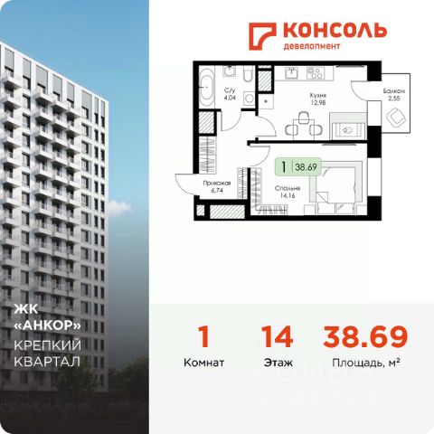 Квартира общей площадью 65 кв.м , с тёплой лоджией 4,48 кв.м,, располагается на 14 этаже 19-этажного монолитно-кирпичного дома. Функциональная планировка современного стандарта 2+ делают эту квартиру отличным сочетанием цена-качество. Большая и светлая гостиная площадью 19,49 кв.м, объединенная с кухонной зоной, две изолированные комнаты - 11,99 и 19,49 кв.м., два санузла. Квартира продается с предчистовой отделкой white box - выполнены стяжки полов, оштукатурены стены, выполнена разводка системы электроснабжения, установлены розетки, установлены все необходимые приборы учета. Это значит, что все черновые работы выполнены, вам нужно только воплотить свои дизайнерские мечты по своему вкусу.