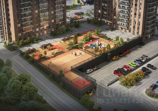 Во дворе детская площадка для разных возрастов, спортивная площадка с ограждением, велодорожки.