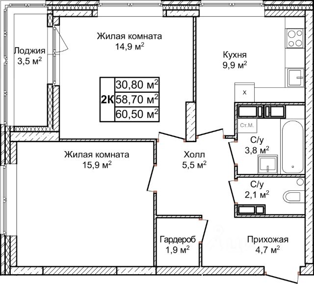 Роскошная 3-комнатная квартира 113,8 м² с собственной парковкой на проспекте Гагарина
