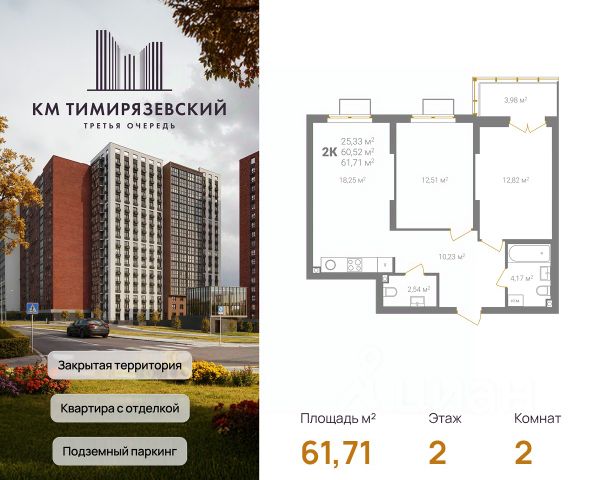 КМ Тимирязевский. 3 очередь — старт продаж! Продолжение проекта, которому доверяют. Самые выгодные цены на старте строительства! Покупайте сейчас — пока цена за м² минимальна. КМ Тимирязевский — современный жилой комплекс комфорт-класса в центре Нижнего Новгорода. Рядом улица Белинского, площадь Лядова, деловые кварталы и любимые места города. До Кремля — 10 минут, до Московского вокзала — 15. Квартира с отделкой "под ключ" На кухне установлен кухонный гарнитур с варочной поверхностью и духовым шкафом; В ванной — акриловая ванна, тропический и гигиенический души, зеркало, тумба с раковиной, стены и пол выложены крупноформатной плиткой; В каждой квартире предусмотрен шкаф в прихожей или система хранения в гардеробной. В каждой комнате поклеены обои, уложен ламинат 32 класса и белоснежный натяжной потолок. Преимущества комплекса: Фасады из керамического кирпича — надёжно и стильно Закрытый двор без машин — безопасность и уют Благоустройство продуманная территория для детей и взрослых Подземный паркинг — два уровня, лифт в жилую часть Коммерческие помещения на 1 этаже — магазины и сервисы рядом Все квартиры с готовой отделкой До 4 квартир в обособленном холле. КМ Тимирязевский. 3 очередь — ваш новый уровень комфорта. В домах третьей очереди действует программа от гк Каркас Монолит "КМ Капитал" — это стратегия, позволяющая использовать потенциал роста стоимости недвижимости максимально прозрачно и эффективно. Цена на квартиру формируется по заранее утверждённому графику, который не зависит от колебаний рынка. Это часть открытой ценовой политики группы компаний Каркас Монолит — вы точно знаете, когда и на сколько изменится стоимость, и можете планировать покупку как профессиональный инвестор. Вы можете видеть стоимость квартиры в конкретный период времени и заранее определить лучший момент для покупки или дальнейших инвестиционных решений. Успейте воспользоваться семейной ипотекой со ставкой 6%. С 2026 года будут меняться условия и оформить льготную ипотеку станет значительно сложнее.