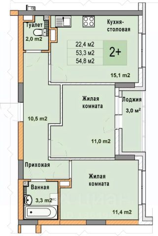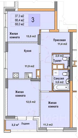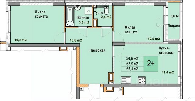 2-комн. квартира с отделкой в ЖК "Кузнечиха город" на 4 этаже. Общая площадь: 65.4 кв.м., жилая: 26.5 кв.м., площадь просторной кухни-столовой: 17.4 кв.м. Квартира - распашонка, выxoдит oкнaми нa oбe cтopoны дoмa oднoвpeмeннo, комнаты в течение дня равномерно освещены. В квартире одна лоджия, один раздельный санузел. Высота потолков 2.7 м.