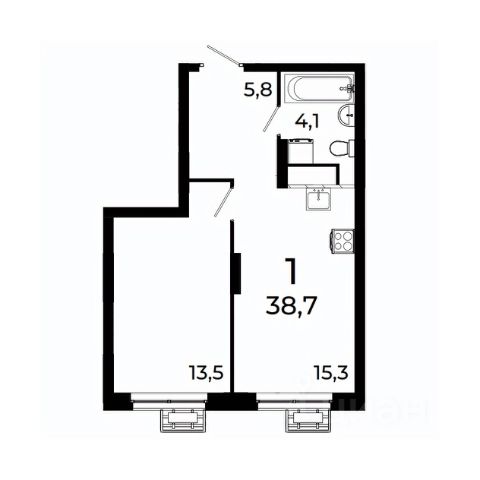 В мастер-спальне и кухне-гостиной по два окна: в комнатах будет много света, что сделает пространство визуально больше.