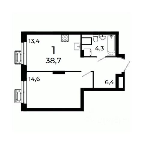 В мастер-спальне и кухне-гостиной по два окна: в комнатах будет много света, что сделает пространство визуально больше.