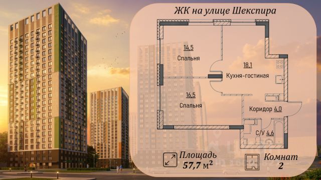 В продаже квартира в строящемся доме (Дом-1) в ЖК на улице Шекспира! Современный жилой комплекс комфорт-класса будет построен в Ленинском районе г. Нижнего Новгорода. Жилой комплекс имеет удобное географическое местоположение - находится вблизи реки Ока, на стыке заречной и нагорной части города, с хорошей транспортной развязкой - рядом с комплексом проходит крупная автомагистраль, что дает возможность выезда в разные районы города. На территории жилого комплекса будут возведены шесть многоквартирных домов высотой 24 этажа, с современными детскими и спортивными площадками, площадками для отдыха, наземными парковочными местами, с собственной инфраструктурой детским садом на 135 мест, школой на 550 мест, поликлиникой и спорткомплексом. По всей территории комплекса будет выполнено благоустройство и озеленение. На первых этажах жилых домов запроектированы коммерческие помещения для размещения организаций обеспечивающих жизнедеятельность и комфортное проживание жителей: продовольственные магазины, аптеки, пункты доставки товаров, салоны красоты, центры творчества и развития и другие. Квартира подходит под льготную ипотеку 6%!