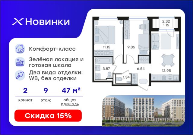 Продается 3-комн. квартира на 9-м этаже в строящемся проекте комфорт-класса Новинки. Общая площадь лота составляет 68,66 кв. м, из которых 31,83 кв. м отведено под жилую и 16,80 кв. м под кухонную зону. Номер квартиры - 477. Преимущества квартиры: угловая евро-4; чистовая отделка; окна во двор; две лоджии; гардеробная - Внедрение лучших практик строительства - Уникальное благоустройство, пешеходные аллеи и продуманные площадки (для релакса, спорта и игр с детьми) - Собственная коммерческая инфраструктура и комьюнити-центр для жителей - Безопасность на всех уровнях: закрытый двор, видеонаблюдение и система "Умный Дом" - Безбарьерная среда - Дизайнерские остекленные холлы - Просторные колясочные в каждой секции - Современные системы вентиляции, места для кондиционеров - Эргономичные квартиры с евро-планировками - Чистовая отделка квартир в 2 стилях на выбор и с дополнительной опцией покраски стен в 4 трендовых цвета на выбор: агатовый серый, серебристо-серый, серый шелк и тонкий лен. - Зеленая зона в шаговой доступности, заповедник регионального значения "Малиновая Гряда" и спортивная деревня Новинки Новинки - это современный масштабный проект в Нижнем Новгороде, который расположился у южной границы города по правому берегу Оки рядом с поселком Новинки в Приокском районе города. Новинки - это проект с уникальным благоустройством, полной инфраструктурой для жизни и выгодными ценами на квартиры комфорт-класса. Близость к зеленым зонам реки, спортивной деревни Новинки и непосредственной черте города - идеальное место для тех кто любит природу, но не готов отказываться от благ современной инфраструктуры. Проект Новинки надежно связан с другими районами Нижнего и популярными загородными направлениями такими как Павловское и Арзамасское направления, проспект Гагарина, а также ж/д станцией Окский берег и аэропортом Стригино. До главной парковой зоны города, парка "Швейцария" всего 15 минут на машине, а до Кремля и Чкаловской лестницы - 40 мин. В проекте Новинки доступен широкий выбор планировочных решений от небольших уютных студий площадью 20 м2 до трехкомнатных квартир площадью до 72 м2 с просторными остекленными лоджиями. Получить ключи и сразу переехать? Легко! Все квартиры в проекте сдаются в чистовой отделке в двух стилях: в светлом и темном. Отдельной опцией можно даже дозаказать покраску стен в 4 трендовых цветах на выбор: агатовый серый, серебристо-серый, серый шелк и тонкий лен. Цена указана при 100% оплате или стандартной ипотеке. Узнайте подробности в Отделе продаж.