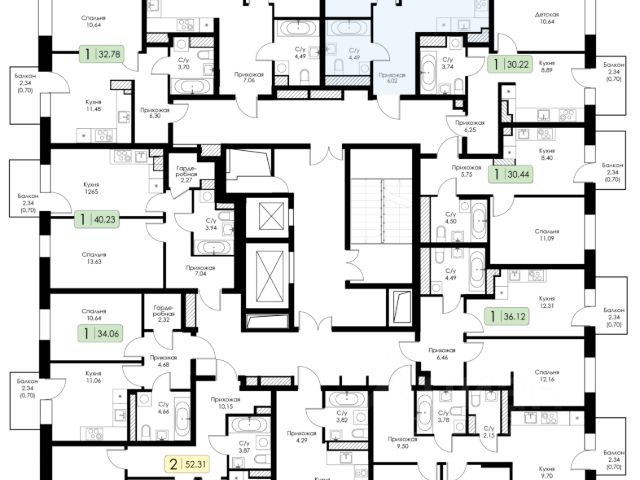 • 1-комнатные квартиры: от 36 м²
