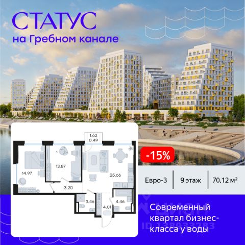 Продается 1-комн. квартира на 9-м этаже в строящемся проекте бизнес-класса СТАТУС на Гребном канале. Общая площадь лота составляет 42,98 кв. м, из которых 13,70 кв. м отведено под жилую и 15,98 кв. м под кухонную зону. Номер квартиры - 524. Преимущества квартиры: евро-двухкомнатная квартира; высокий этаж; вид на улицу - Современная набережная с философией Slow-life, зонами медитации и амфитеатром у воды - Гастрокластер с акцентом на здоровое питание - Общественный центр со спортзалом, бассейном и супермаркетом - Детский плейхаб с нетиповыми площадками - Близость к центру города - Отапливаемые паркинги - Дизайнерское гранд-лобби со вторым светом и клубом резидентов - Приватные дворы на стилобате - Окна в пол - Умные замки с возможностью открытия двери с помощью отпечатка пальца или кода СТАТУС на Гребном канале — это курортный Нижний. Современные кварталы премиум-класса у воды недалеко от центра города с философией slow-life. Концентрация на настоящем, забота о собственном физическом и ментальном здоровье, соблюдение баланса между трудом и отдыхом. Инфраструктура для активной и здоровой жизни, модный гастрокластер с особыми программами питания. Маловысотные дома с видами на реку и с фасадами в виде парусов. А рядом - многофункциональная набережная с променадом, зонами для медитации и йоги, упирающаяся в любимейшую пляжную зону всех нижегородцев и во все века прекрасная река. Гармоничная среда, дающая возможность услышать свой внутренний голос, понять свои истинные желания и чувства. СТАТУС на Гребном канале — это семейный Нижний. Два детских сада, школа, нетиповые детские площадки для разных возрастов. Экологичные материалы. Безопасность и видеонаблюдение. Простор для прогулок на многоуровневой набережной, велодорожки и релакс-зоны. Сложно представить лучше жизнь ваших детей. СТАТУС на Гребном канале это эксклюзивный Нижний с современной средой, в которой решения и внимание к деталям подчеркивают высокий статус и индивидуальность жителей. Приватные дворы на стилобатах, безбарьерная среда, IP домофоны, просмотр камер с домофона через мобильное приложение, системы "Умный ЖК" и отапливаемые паркинги. Дизайнерское гранд-лобби со вторым светом и клубом резидентов. Общественный центр сj спортзалом, бассейном, супермаркетом, кафе и рестораном. СТАТУС на Гребном канале - это не координаты на карте, а внутреннее состояние. Идеальным оно становится тогда, когда все вокруг работает на ваше благополучие. СТАТУС на Гребном канале вырос в месте, на набережной Гребного канала, где Волга простирается вдоль горизонта, а из окон будущих резидентов открывается панорама на великолепие зеленых зон. А главное — всего 9 минут до центра Нижнего Новгорода и Кремля на авто. Редкое сочетание близости к деловой жизни города в атмосфере уединенного курорта. Рядом 2 остановки общественного транспорта, вертолетная площадка и речной вокзал. До международного аэропорта им. Чкалова 50 мин на авто. Цена указана при 100% оплате или стандартной ипотеке. Узнайте подробности