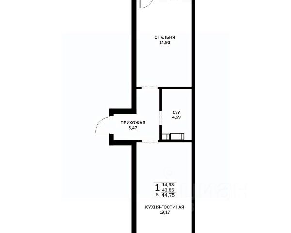 Общая площадь квартиры -21,3 кв.м., жилая площадь-11,8 кв.м, кухня-5,2 кв.м, совмещённый санузел- 2,5 кв.м., прихожая с встроенным шкафом-2 кв.м..