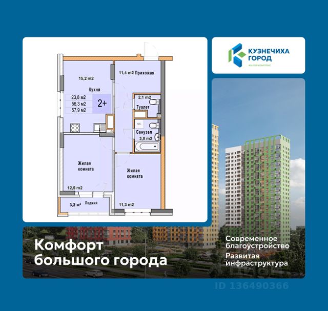 Продается 2-комн. квартира от застройщика с отделкой в ЖК "Кузнечиха город" на 2 этаже. Общая площадь: 56.8 кв.м., жилая: 25.2 кв.м., площадь просторной кухни-столовой: 13.3 кв.м. Комнаты изолированные, все окна выходят на одну сторону. В квартире один балкон, один раздельный санузел. Высота потолков 2.7 м. Квартира находится в корпусе 4. Дом монолитный, одноподъездный, высотой 25 этажей. На этаже 8 квартир. В подъезде 1 пассажирский и 2 грузовых лифта. Окончание строительства - 2 квартал 2028 года. Оформление сделки по договору долевого участия. "Кузнечиха Город" это современный семейный жилой комплекс расположенный в Советском районе в окружении парков и развитой инфраструктуры. Проект ориентирован на семейную аудиторию, поэтому особое внимание уделяется благоустройству и формированию соответствующей инфраструктуры. 1-ая очередь застройки включает в себя 12 кварталов, состоящих из 37 домов разной этажности. В 2024 году строительство первой очереди было завершено. На территории первой очереди ЖК работают 2 детских сада и школа, открыто более 100 объектов торговой инфраструктуры. 2-ая очередь застройки - это еще 16 домов по 10 и 25 этажей. По состоянию на октябрь 2025 г. в эксплуатацию введено 12 домов. Помимо жилых домов, здесь появится и развитая социальная, коммерческая, транспортная инфраструктура и благоустройство. На территории второй очереди уже работает школа, ведется подготовка к строительству детского сада на 320 мест. В 3-ей очереди застройки запланировано строительство 11 домов высотой 10, 18 и 25 этажей. Кроме строительства жилых домов, проект предусматривает создание развитой социальной, коммерческой и транспортной инфраструктуры. Ведется подготовка к строительству детского сада, рассчитанного на 220 мест. Все квартиры в ЖК передаются клиентам с чистовой отделкой класса "комфорт" В жилых комнатах, кухне и прихожей — обои нейтрального оттенка, белые межкомнатные двери без стекол. Пол в жилых комнатах — ламинат под дуб, в кухне и прихожей — плитка. Натяжные потолки во всех помещениях. Стены и пол в ванной и санузле будут отделаны керамогранитом, в ванной установлен полный комплект сантехники, включая акриловую ванну с экраном и смесителем, тумбу для хранения под раковиной, зеркало с подсветкой. Застройщик также позаботился и о деталях, поэтому все инженерные коммуникации, стояки водоснабжения и канализации будут скрыты декоративными коробами. #ZMAIFo Продам квартиру в ипотеку рядом с метро Ленинская.