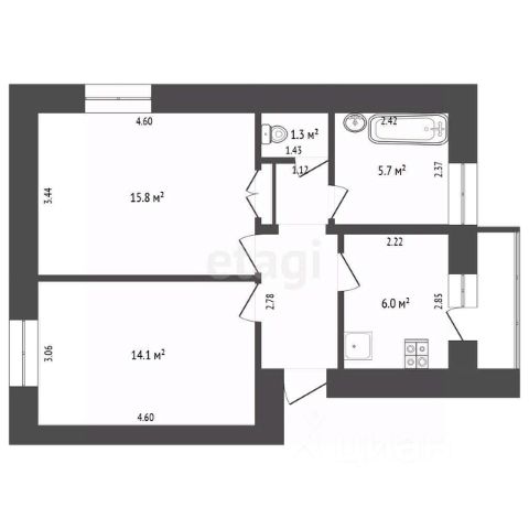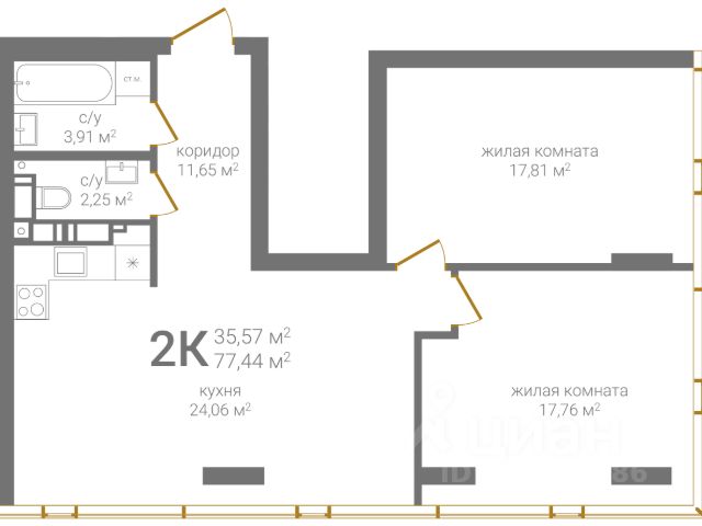 Площадь 63,9 кв.м, жилая 45 кв.м, кухня 9,5 кв.м просторная и светлая. Здесь легко разместить большой стол, собрать всю семью на ужин и начинать утро с ароматного кофе у окна.