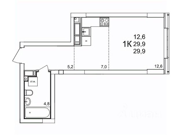 Продается 1-комн. квартира-студия с отделкой в ЖК "Кузнечиха город" на 1 этаже. Общая площадь: 26.4 кв.м., площадь гостиной 16 кв.м., из которых 3.6 кв.м. выделено под кухонную зону. Все окна выходят на одну сторону. В квартире один совмещенный санузел. Высота потолков 2.5 м. Квартира находится в корпусе 15. Дом монолитный, одноподъездный, высотой 25 этажей. На этаже 8 квартир. В подъезде 2 пассажирских и 1 грузовой лифт. Окончание строительства - 2 квартал 2028 года. Оформление сделки по договору долевого участия. "Кузнечиха Город" это современный семейный жилой комплекс расположенный в Советском районе в окружении парков и развитой инфраструктуры. Проект ориентирован на семейную аудиторию, поэтому особое внимание уделяется благоустройству и формированию соответствующей инфраструктуры. 1-ая очередь застройки включает в себя 12 кварталов, состоящих из 37 домов разной этажности. В 2024 году строительство первой очереди было завершено. На территории первой очереди ЖК работают 2 детских сада и школа, открыто более 100 объектов торговой инфраструктуры. 2-ая очередь застройки - это еще 16 домов по 10 и 25 этажей. По состоянию на октябрь 2025 г. в эксплуатацию введено 12 домов. Помимо жилых домов, здесь появится и развитая социальная, коммерческая, транспортная инфраструктура и благоустройство. На территории второй очереди уже работает школа, ведется подготовка к строительству детского сада на 320 мест. В 3-ей очереди застройки запланировано строительство 11 домов высотой 10, 18 и 25 этажей. Кроме строительства жилых домов, проект предусматривает создание развитой социальной, коммерческой и транспортной инфраструктуры. Ведется подготовка к строительству детского сада, рассчитанного на 220 мест. Все квартиры в ЖК передаются клиентам с чистовой отделкой класса "комфорт" В жилых комнатах, кухне и прихожей — обои нейтрального оттенка, белые межкомнатные двери без стекол. Пол в жилых комнатах — ламинат под дуб, в кухне и прихожей — плитка. Натяжные потолки во всех помещениях. Стены и пол в ванной и санузле будут отделаны керамогранитом, в ванной установлен полный комплект сантехники, включая акриловую ванну с экраном и смесителем, тумбу для хранения под раковиной, зеркало с подсветкой. Застройщик также позаботился и о деталях, поэтому все инженерные коммуникации, стояки водоснабжения и канализации будут скрыты декоративными коробами. #Zmal3d