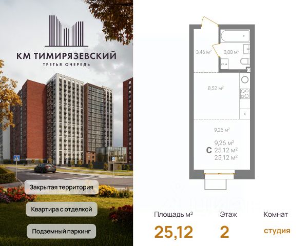 Просторная однокомнатная квартира-студия с отделкой в ЖК "Кузнечиха город" на 10 этаже. Общая площадь: 28.2 кв.м., площадь гостиной 20 кв.м., из которых 9 кв.м. выделено под кухонную зону. Все окна выходят на одну сторону. В квартире одна лоджия, один совмещенный санузел. Высота потолков 2.7 м. Квартира находится в корпусе 4. Дом монолитный, одноподъездный, высотой 25 этажей. На этаже 8 квартир. В подъезде 1 пассажирский и 2 грузовых лифта. Окончание строительства - 2 квартал 2028 года. Оформление сделки по договору долевого участия. "Кузнечиха Город" это современный семейный жилой комплекс расположенный в Советском районе в окружении парков и развитой инфраструктуры. Проект ориентирован на семейную аудиторию, поэтому особое внимание уделяется благоустройству и формированию соответствующей инфраструктуры. 1-ая очередь застройки включает в себя 12 кварталов, состоящих из 37 домов разной этажности. В 2024 году строительство первой очереди было завершено. На территории первой очереди ЖК работают 2 детских сада и школа, открыто более 100 объектов торговой инфраструктуры. 2-ая очередь застройки - это еще 16 домов по 10 и 25 этажей. По состоянию на октябрь 2025 г. в эксплуатацию введено 12 домов. Помимо жилых домов, здесь появится и развитая социальная, коммерческая, транспортная инфраструктура и благоустройство. На территории второй очереди уже работает школа, ведется подготовка к строительству детского сада на 320 мест. В 3-ей очереди застройки запланировано строительство 11 домов высотой 10, 18 и 25 этажей. Кроме строительства жилых домов, проект предусматривает создание развитой социальной, коммерческой и транспортной инфраструктуры. Ведется подготовка к строительству детского сада, рассчитанного на 220 мест. Все квартиры в ЖК передаются клиентам с чистовой отделкой класса "комфорт" В жилых комнатах, кухне и прихожей — обои нейтрального оттенка, белые межкомнатные двери без стекол. Пол в жилых комнатах — ламинат под дуб, в кухне и прихожей — плитка. Натяжные потолки во всех помещениях. Стены и пол в ванной и санузле будут отделаны керамогранитом, в ванной установлен полный комплект сантехники, включая акриловую ванну с экраном и смесителем, тумбу для хранения под раковиной, зеркало с подсветкой. Застройщик также позаботился и о деталях, поэтому все инженерные коммуникации, стояки водоснабжения и канализации будут скрыты декоративными коробами. #ZMAzld