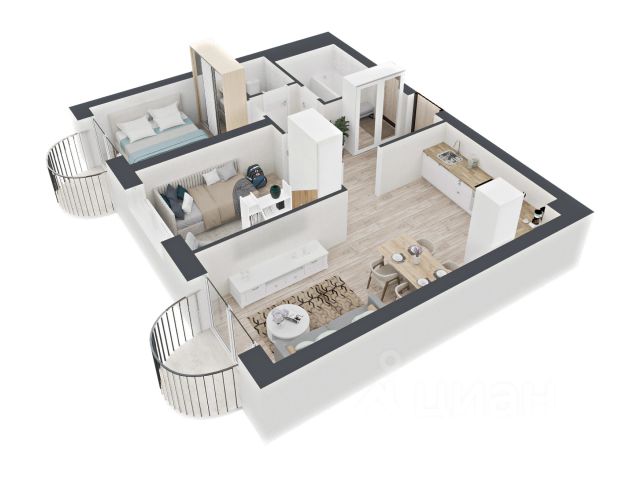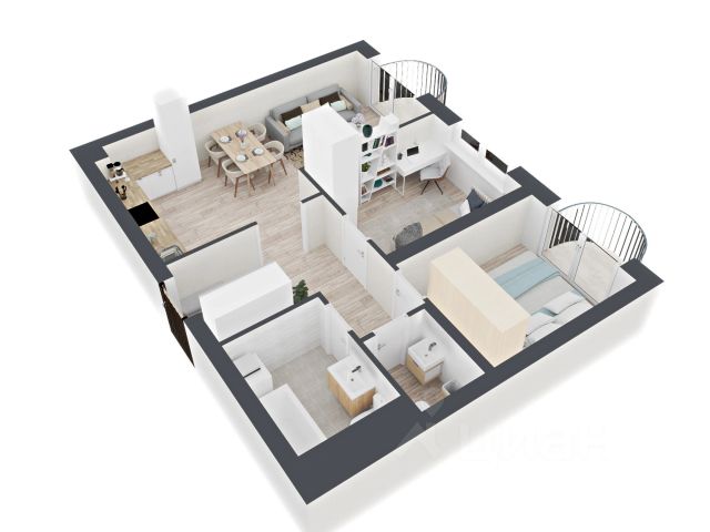 евро-трехкомнатная квартира; высокий этаж; угловая; много окон; вид на улицу; балкон