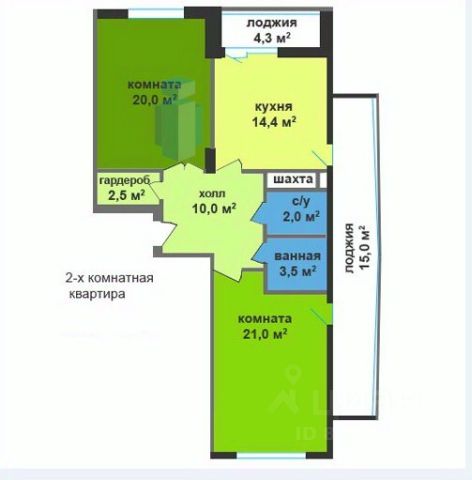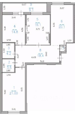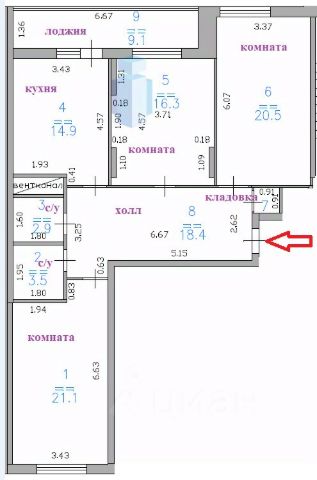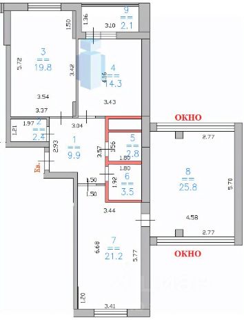 Просторная видовая евро 1-к квартира общей площадью 60,4 м (с учетом лоджии).