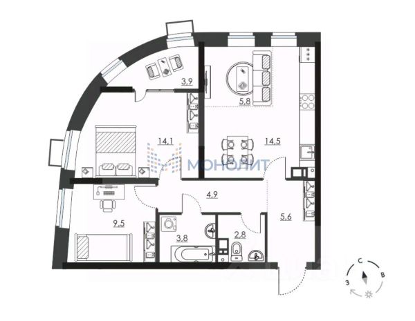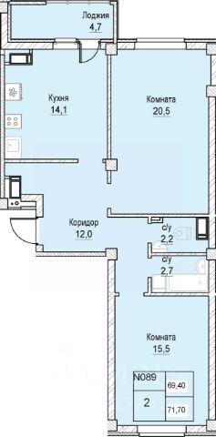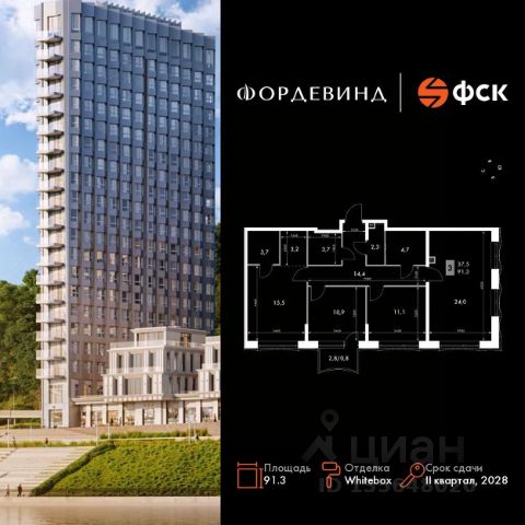 Квартира общей площадью 65 кв.м , с тёплой лоджией 4,48 кв.м,, располагается на 14 этаже 19-этажного монолитно-кирпичного дома. Функциональная планировка современного стандарта 2+ делают эту квартиру отличным сочетанием цена-качество. Большая и светлая гостиная площадью 19,49 кв.м, объединенная с кухонной зоной, две изолированные комнаты - 11,99 и 19,49 кв.м., два санузла. Квартира продается с предчистовой отделкой white box - выполнены стяжки полов, оштукатурены стены, выполнена разводка системы электроснабжения, установлены розетки, установлены все необходимые приборы учета. Это значит, что все черновые работы выполнены, вам нужно только воплотить свои дизайнерские мечты по своему вкусу.