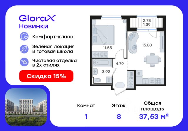 • ✅ Минимальная площадь: 21,9 м²