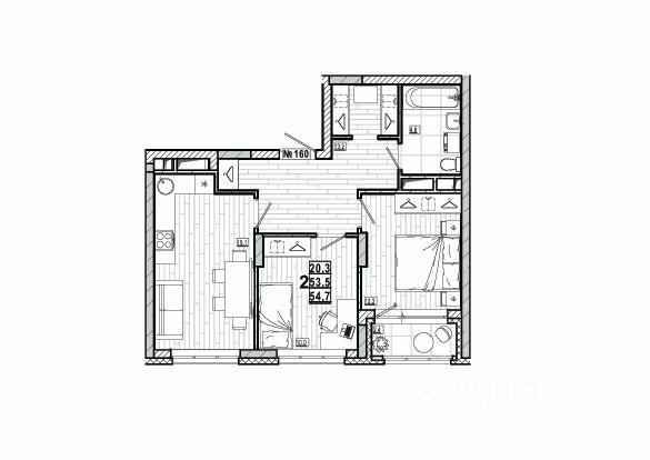 в квартире действительно комфортная планировка-две просторные изолированные комнаты площадью 15,1 кв.м. и 12,6 кв.м.;