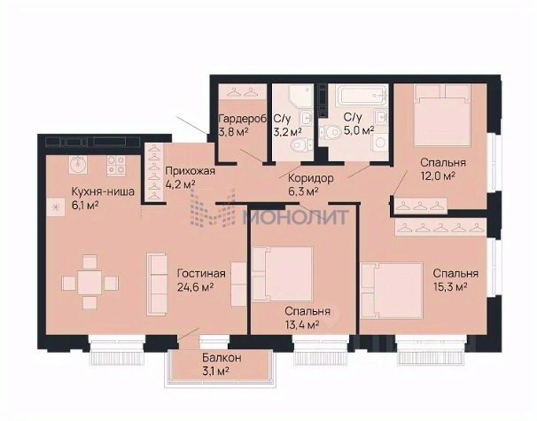 В жилых комнатах, кухне и прихожей — обои нейтрального оттенка, белые межкомнатные двери без стекол. Пол в жилых комнатах — ламинат под дуб, в кухне и прихожей — плитка. Натяжные потолки во всех помещениях. Стены и пол в ванной и санузле будут отделаны керамогранитом, в ванной установлен полный комплект сантехники, включая акриловую ванну с экраном и смесителем, тумбу для хранения под раковиной, зеркало с подсветкой. Застройщик также позаботился и о деталях, поэтому все инженерные коммуникации, стояки водоснабжения и канализации будут скрыты декоративными коробами. #Zm8Te8 Продам квартиру с отделкой в районе Советский в городе Нижний Новгород.