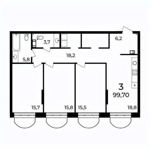 Готовая квартира от застройщика. Просторная светлая квартира с продуманной планировкой: гостиная 20 м², отдельная кухня 11.9 м², две раздельные санузла, вместительная прихожая, балкон и лоджия. Идеальный вариант для семьи — много пространства, изолированные комнаты, удобные зоны хранения. Квартира в черновой отделке.