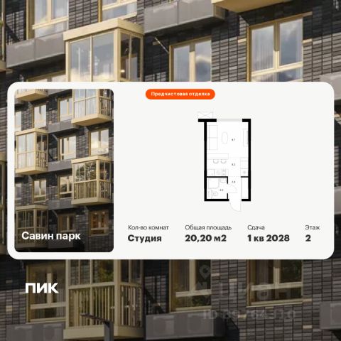 Продаётся квартира-студия площадью 20,2 кв.м на 2 этаже 25 этажного дома (Корпус 8, Секция 1) проекта ПИК Савин парк. Светлый просторный подъезд на уровне земли, функциональная планировка, большие окна, предчистовая отделка. Жилой квартал "Савин парк" возводится в Кстовском муниципальном районе, рядом с Советским районом Нижнего Новгорода. До центра Нижнего Новгорода всего 20 минут на автомобиле, а до города Кстово - 18 минут. В этом проекте есть всё для комфортной жизни. Кроме жилых домов, проект включает два детских сада, один из которых уже строится, школу и многоуровневые надземные паркинги. На первых этажах откроются кафе, магазины и другие сервисы - чтобы купить кофе к завтраку или пиццу на ужин, можно будет просто спуститься на лифте. На подземном этаже появятся кладовые, в которых удобно хранить крупные и сезонные вещи. Чтобы жители квартала чувствовали простор и получали больше солнечного света, мы построим дома разной высоты. Во дворах появятся уютные парки с детскими площадками и местами для отдыха - здесь можно поболтать с соседями, почитать в тени или позаниматься йогой. Спортивные площадки мы разместим так, чтобы шум от них не мешал жителям. В квартирах тоже будет много солнечного света за счёт балконов и больших окон. Вы получите ключи от квартиры с уже готовой отделкой - можно заезжать и жить. На машине от "Савин парка" можно доехать до ТРЦ "МЕГА" за 7 минут, за 14 минут - до Анкудиновского леса, а за 20 - до "Щёлоковского хутора". Артикул 985579 (Застройщик ООО "СЗ "Экострой")