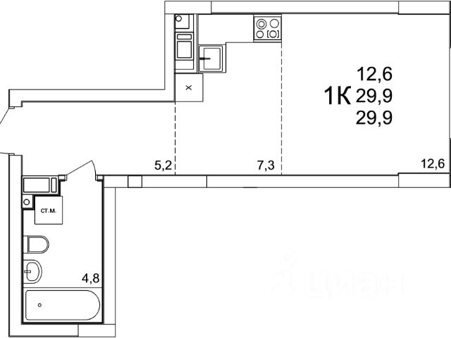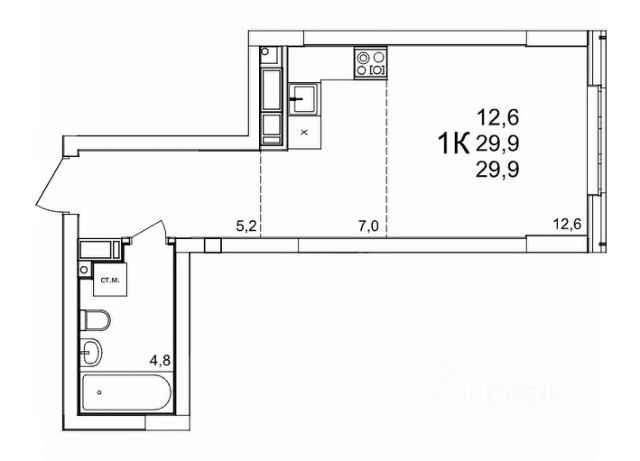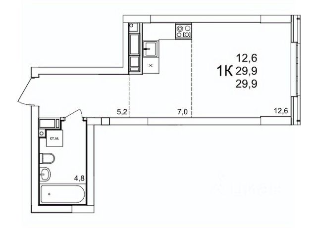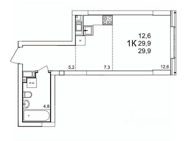 Продается 1-комн. квартира-студия с отделкой в ЖК "Кузнечиха город" на 7 этаже. Общая площадь: 23.4 кв.м., площадь гостиной 12.7 кв.м., из которых 3.6 кв.м. выделено под кухонную зону. Все окна выходят на одну сторону. В квартире одна лоджия, один совмещенный санузел. Высота потолков 2.5 м. Квартира находится в корпусе 15. Дом монолитный, одноподъездный, высотой 25 этажей. На этаже 8 квартир. В подъезде 2 пассажирских и 1 грузовой лифт. Окончание строительства - 2 квартал 2028 года. Оформление сделки по договору долевого участия. "Кузнечиха Город" это современный семейный жилой комплекс расположенный в Советском районе в окружении парков и развитой инфраструктуры. Проект ориентирован на семейную аудиторию, поэтому особое внимание уделяется благоустройству и формированию соответствующей инфраструктуры. 1-ая очередь застройки включает в себя 12 кварталов, состоящих из 37 домов разной этажности. В 2024 году строительство первой очереди было завершено. На территории первой очереди ЖК работают 2 детских сада и школа, открыто более 100 объектов торговой инфраструктуры. 2-ая очередь застройки - это еще 16 домов по 10 и 25 этажей. По состоянию на октябрь 2025 г. в эксплуатацию введено 12 домов. Помимо жилых домов, здесь появится и развитая социальная, коммерческая, транспортная инфраструктура и благоустройство. На территории второй очереди уже работает школа, ведется подготовка к строительству детского сада на 320 мест. В 3-ей очереди застройки запланировано строительство 11 домов высотой 10, 18 и 25 этажей. Кроме строительства жилых домов, проект предусматривает создание развитой социальной, коммерческой и транспортной инфраструктуры. Ведется подготовка к строительству детского сада, рассчитанного на 220 мест. Все квартиры в ЖК передаются клиентам с чистовой отделкой класса "комфорт" В жилых комнатах, кухне и прихожей — обои нейтрального оттенка, белые межкомнатные двери без стекол. Пол в жилых комнатах — ламинат под дуб, в кухне и прихожей — плитка. Натяжные потолки во всех помещениях. Стены и пол в ванной и санузле будут отделаны керамогранитом, в ванной установлен полный комплект сантехники, включая акриловую ванну с экраном и смесителем, тумбу для хранения под раковиной, зеркало с подсветкой. Застройщик также позаботился и о деталях, поэтому все инженерные коммуникации, стояки водоснабжения и канализации будут скрыты декоративными коробами. #zmaIMZ