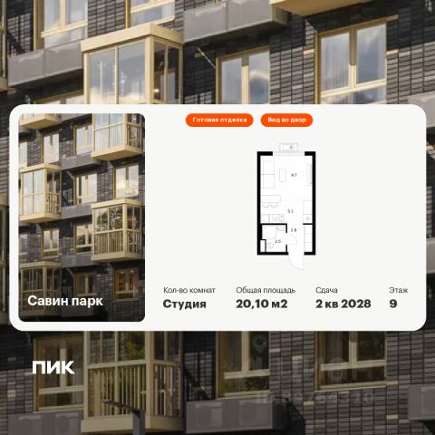 Продаётся квартира-студия площадью 20,1 кв.м на 24 этаже 25 этажного дома (Корпус 8, Секция 1) проекта ПИК Савин парк. Светлый просторный подъезд на уровне земли, функциональная планировка, большие окна, предчистовая отделка. Жилой квартал "Савин парк" возводится в Кстовском муниципальном районе, рядом с Советским районом Нижнего Новгорода. До центра Нижнего Новгорода всего 20 минут на автомобиле, а до города Кстово - 18 минут. В этом проекте есть всё для комфортной жизни. Кроме жилых домов, проект включает два детских сада, один из которых уже строится, школу и многоуровневые надземные паркинги. На первых этажах откроются кафе, магазины и другие сервисы - чтобы купить кофе к завтраку или пиццу на ужин, можно будет просто спуститься на лифте. На подземном этаже появятся кладовые, в которых удобно хранить крупные и сезонные вещи. Чтобы жители квартала чувствовали простор и получали больше солнечного света, мы построим дома разной высоты. Во дворах появятся уютные парки с детскими площадками и местами для отдыха - здесь можно поболтать с соседями, почитать в тени или позаниматься йогой. Спортивные площадки мы разместим так, чтобы шум от них не мешал жителям. В квартирах тоже будет много солнечного света за счёт балконов и больших окон. Вы получите ключи от квартиры с уже готовой отделкой - можно заезжать и жить. На машине от "Савин парка" можно доехать до ТРЦ "МЕГА" за 7 минут, за 14 минут - до Анкудиновского леса, а за 20 - до "Щёлоковского хутора". Артикул 985863 (Застройщик ООО "СЗ "Экострой") Продам квартиру-студию в ипотеку в новостройке в Нижнем Новгороде.