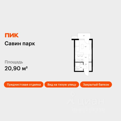 Продаётся квартира-студия площадью 20,9 кв.м на 11 этаже 25 этажного дома (Корпус 8, Секция 1) проекта ПИК Савин парк. Светлый просторный подъезд на уровне земли, функциональная планировка, большие окна, предчистовая отделка. Жилой квартал "Савин парк" возводится в Кстовском муниципальном районе, рядом с Советским районом Нижнего Новгорода. До центра Нижнего Новгорода всего 20 минут на автомобиле, а до города Кстово - 18 минут. В этом проекте есть всё для комфортной жизни. Кроме жилых домов, проект включает два детских сада, один из которых уже строится, школу и многоуровневые надземные паркинги. На первых этажах откроются кафе, магазины и другие сервисы - чтобы купить кофе к завтраку или пиццу на ужин, можно будет просто спуститься на лифте. На подземном этаже появятся кладовые, в которых удобно хранить крупные и сезонные вещи. Чтобы жители квартала чувствовали простор и получали больше солнечного света, мы построим дома разной высоты. Во дворах появятся уютные парки с детскими площадками и местами для отдыха - здесь можно поболтать с соседями, почитать в тени или позаниматься йогой. Спортивные площадки мы разместим так, чтобы шум от них не мешал жителям. В квартирах тоже будет много солнечного света за счёт балконов и больших окон. Вы получите ключи от квартиры с уже готовой отделкой - можно заезжать и жить. На машине от "Савин парка" можно доехать до ТРЦ "МЕГА" за 7 минут, за 14 минут - до Анкудиновского леса, а за 20 - до "Щёлоковского хутора". Артикул 985692 (Застройщик ООО "СЗ "Экострой")