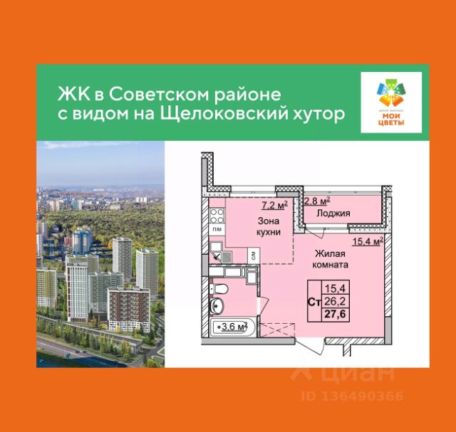 Продается 1-комн. квартира-студия с отделкой в ЖК "Кузнечиха город" на 15 этаже. Общая площадь: 27.9 кв.м., площадь гостиной 19.8 кв.м., из которых 8.8 кв.м. выделено под кухонную зону. Все окна выходят на одну сторону. В квартире одна лоджия, один совмещенный санузел. Высота потолков 2.7 м.