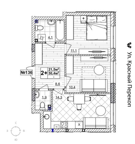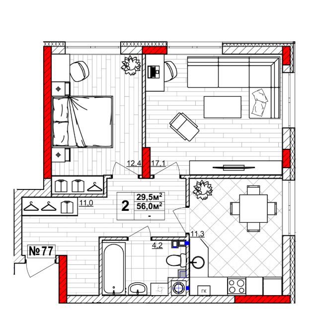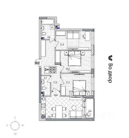 Семейные планировки от 66,2 м² 3 комнаты + балкон
