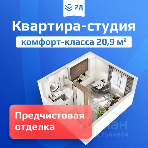 Квартира-студия 20,9 кв.м. в жилом комплексе "2Д Федосеенко".