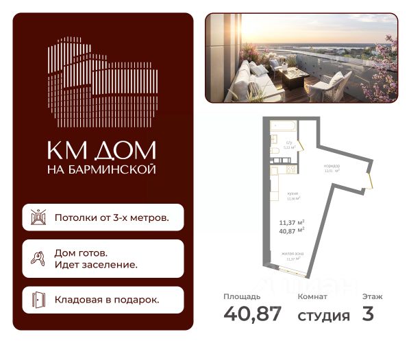 Продаётся квартира в готовом жилом комплексе бизнес-класса КМ Дом на Барминской. Дом введён в эксплуатацию, выдача ключей после сделки. Жить в КМ Доме на Барминской, значит чувствовать себя на вершине — весь город у ваших ног, а с высоты открываются поистине фантастические панорамы. Исторический центр, площадь трех церквей, виды на живописные изгибы Оки и Волги и утопающие в зелени Дятловы горы, яркие огни любимого города — все это только ваше. Позвольте себе больше и обретите дом с видом на любимый Нижний. КМ Дом на Барминской это: Высокие потолки Квартиры с потолками более 3 метров — создайте пространство, которое полностью отражает ваш стиль жизни. Виды, которые становятся частью интерьера Панорамные виды из окон, а также общая видовая терраса на крыше — редкий формат для центра города. Комфорт и безопасность высокого уровня Умный дом, бесключевой доступ по Face ID, видеонаблюдение, надежные лифты и дизайнерские входные группы — всё для спокойствия и приватности. Удобство каждый день Двухуровневый подземный паркинг, кладовые помещения, закрытый, благоустроенный тихий двор с зонами отдыха и детскими площадками. Идеальная локация Центр города: рядом кафе, рестораны, магазины, университеты, культурные пространства и строящийся ИТ-кампус "Неймарк". Удобная транспортная развязка, легко добраться в любую часть города. Комфорт для семей В шаговой доступности детские сады и школы. Рядом скоро откроется новый детский сад на 150 мест. Ваш новый дом готов. КМ Дом на Барминской — это возможность заехать сразу и начать жить в пространстве с панорамными видами и высоким уровнем комфорта. Продается квартира со свободной планировкой в монолитном доме в Нижнем Новгороде.