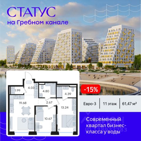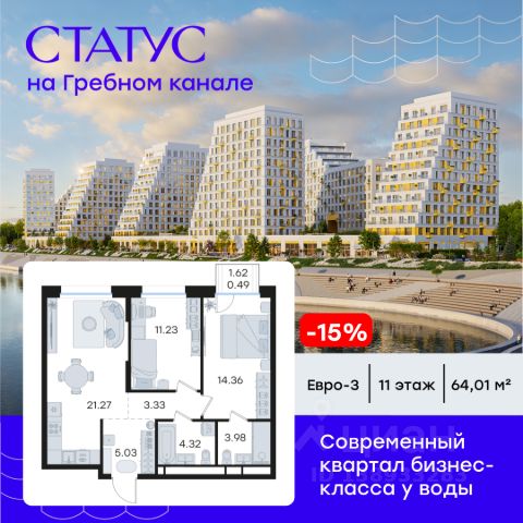 Продается 2-комн. квартира на 2-м этаже в строящемся проекте бизнес-класса СТАТУС на Гребном канале. Общая площадь лота составляет 63,43 кв. м, из которых 25,17 кв. м отведено под жилую и 21,23 кв. м под кухонную зону. Номер квартиры - 2. Преимущества квартиры: евро-трехкомнатная квартира; вид во двор и на реку; мастер-спальня - Современная набережная с философией Slow-life, зонами медитации и амфитеатром у воды - Гастрокластер с акцентом на здоровое питание - Общественный центр со спортзалом, бассейном и супермаркетом - Детский плейхаб с нетиповыми площадками - Близость к центру города - Отапливаемые паркинги - Дизайнерское гранд-лобби со вторым светом и клубом резидентов - Приватные дворы на стилобате - Окна в пол - Умные замки с возможностью открытия двери с помощью отпечатка пальца или кода СТАТУС на Гребном канале — это курортный Нижний. Современные кварталы премиум-класса у воды недалеко от центра города с философией slow-life. Концентрация на настоящем, забота о собственном физическом и ментальном здоровье, соблюдение баланса между трудом и отдыхом. Инфраструктура для активной и здоровой жизни, модный гастрокластер с особыми программами питания. Маловысотные дома с видами на реку и с фасадами в виде парусов. А рядом - многофункциональная набережная с променадом, зонами для медитации и йоги, упирающаяся в любимейшую пляжную зону всех нижегородцев и во все века прекрасная река. Гармоничная среда, дающая возможность услышать свой внутренний голос, понять свои истинные желания и чувства. СТАТУС на Гребном канале — это семейный Нижний. Два детских сада, школа, нетиповые детские площадки для разных возрастов. Экологичные материалы. Безопасность и видеонаблюдение. Простор для прогулок на многоуровневой набережной, велодорожки и релакс-зоны. Сложно представить лучше жизнь ваших детей. СТАТУС на Гребном канале это эксклюзивный Нижний с современной средой, в которой решения и внимание к деталям подчеркивают высокий статус и индивидуальность жителей. Приватные дворы на стилобатах, безбарьерная среда, IP домофоны, просмотр камер с домофона через мобильное приложение, системы "Умный ЖК" и отапливаемые паркинги. Дизайнерское гранд-лобби со вторым светом и клубом резидентов. Общественный центр сj спортзалом, бассейном, супермаркетом, кафе и рестораном. СТАТУС на Гребном канале - это не координаты на карте, а внутреннее состояние. Идеальным оно становится тогда, когда все вокруг работает на ваше благополучие. СТАТУС на Гребном канале вырос в месте, на набережной Гребного канала, где Волга простирается вдоль горизонта, а из окон будущих резидентов открывается панорама на великолепие зеленых зон. А главное — всего 9 минут до центра Нижнего Новгорода и Кремля на авто. Редкое сочетание близости к деловой жизни города в атмосфере уединенного курорта. Рядом 2 остановки общественного транспорта, вертолетная площадка и речной вокзал. До международного аэропорта им. Чкалова 50 мин на авто. Цена указана при 100% оплате или стандартной ипотеке. Узнайте по