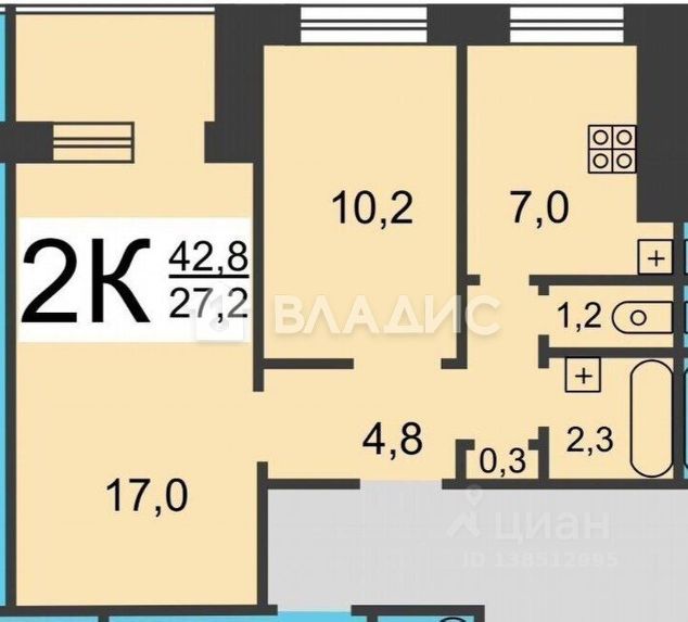 Комната большая .(17, 2 кв м). , С/уз. совмещен, стены выложены современной плиткой, новая белая сантехника, импортные смесители, заменены все трубы, новый полотенцесушитель.