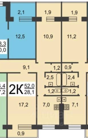 Эргономичная планировка: кухня 8,5м, две изолированных комнаты 27+12 м, огромный хол 16м, с/у раздельный, три вместительных лоджии по 3,4м каждая.